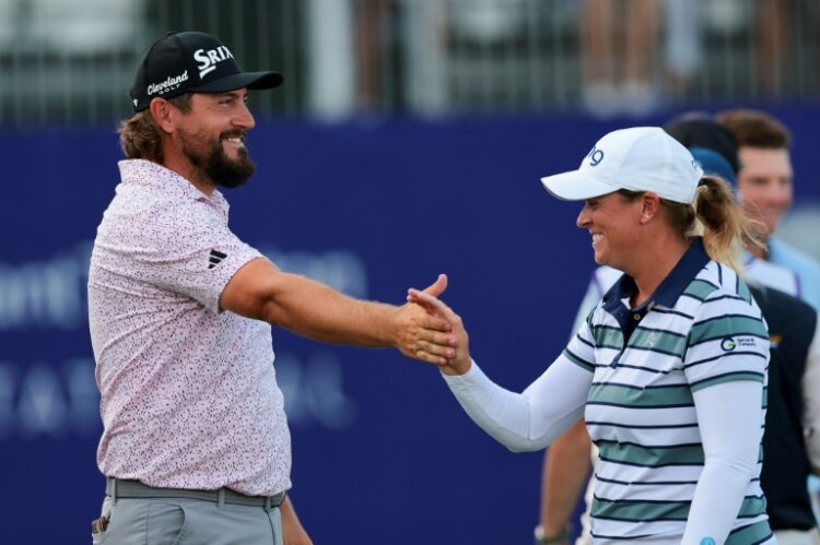 Miami (AFP) – Americans Andrew Novak and Lauren Coughlin won the PGA and LPGA Grant Thornton Invitational pairs tournament on Sunday to split a $1 million top prize at the $4 million event. Novak and Coughlin combined to shoot a nine-under 63 on Sunday to finish on a record 28-under 188 after 54 holes at Tiburon Golf Club in Naples, Florida.