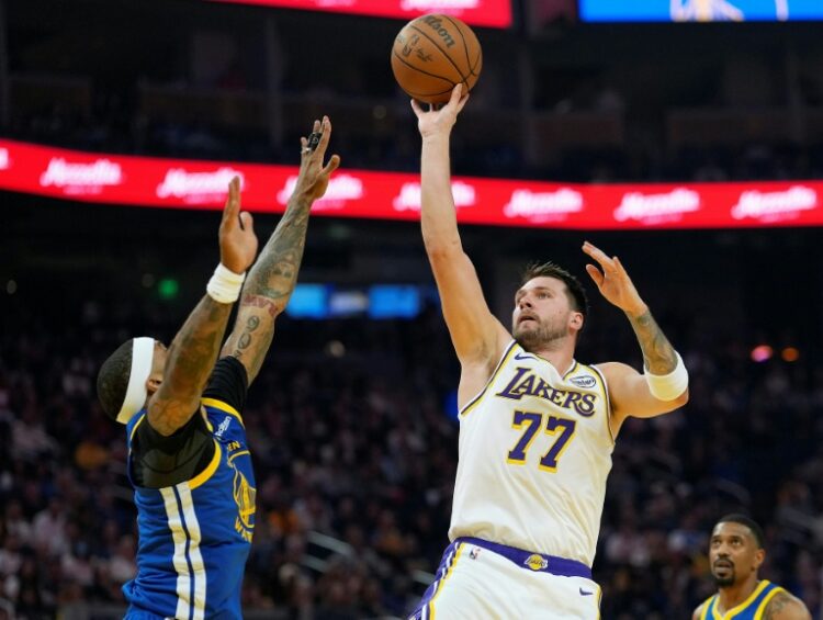 Los Angeles (United States) (AFP) – Luka Doncic marked his birthday with 26 points as the Los Angeles Lakers boosted their playoff hopes with a 129-101 drubbing of the depleted Golden State Warriors on Saturday. Doncic rattled in four three-pointers with six rebounds and eight assists in a dominant Lakers win at San Francisco’s Chase Center. LeBron James backed Doncic with a 22-point haul while Austin Reaves finished with 18 points to give the Lakers a morale-boosting victory after three consecutive losses. The Warriors, missing the injured Stephen Curry and Jimmy Butler, were in damage limitation mode throughout after trailing by 13 points at the end of the first quarter.