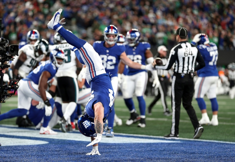 Los Angeles (United States) (AFP) – Rookie quarterback Jaxson Dart piloted the New York Giants to a 34-17 NFL victory over the Philadelphia Eagles on Thursday, handing the reigning Super Bowl champions a second straight NFL defeat. Dart, making his third NFL start after taking over from struggling veteran Russell Wilson, threw for one touchdown and ran for another. Rookie running back Cam Skattebo rushed for 98 yards and three TDs as the Giants pulled away for just their second victory of the season in the NFC East division clash at MetLife Stadium in New Jersey.