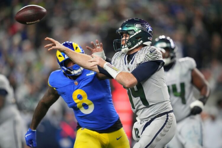 Los Angeles (United States) (AFP) – Sam Darnold and the Seattle Seahawks pulled off an improbable comeback in overtime to beat the Los Angeles Rams 38-37 Thursday and overtake their rivals in the race for the NFC number-one seed spot. Quarterback Darnold found Eric Saubert on a nail-biting two-point conversion attempt, after the Seahawks had rallied from a 16-point deficit in the fourth quarter, and both sides had scored touchdowns in the additional period.