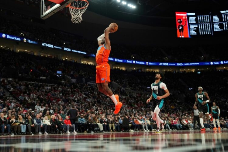 Los Angeles (United States) (AFP) – The NBA champion Oklahoma City Thunder avenged their only defeat of the season on Sunday, using a fourth-quarter surge to beat the Portland Trail Blazers 123-115 and improve to 20-1. Shai Gilgeous-Alexander scored 26 points to lead six Thunder players to score in double figures. With their 12th straight win, Oklahoma City is off to the best start since the 2015-16 Golden State Warriors opened the season 21-0.